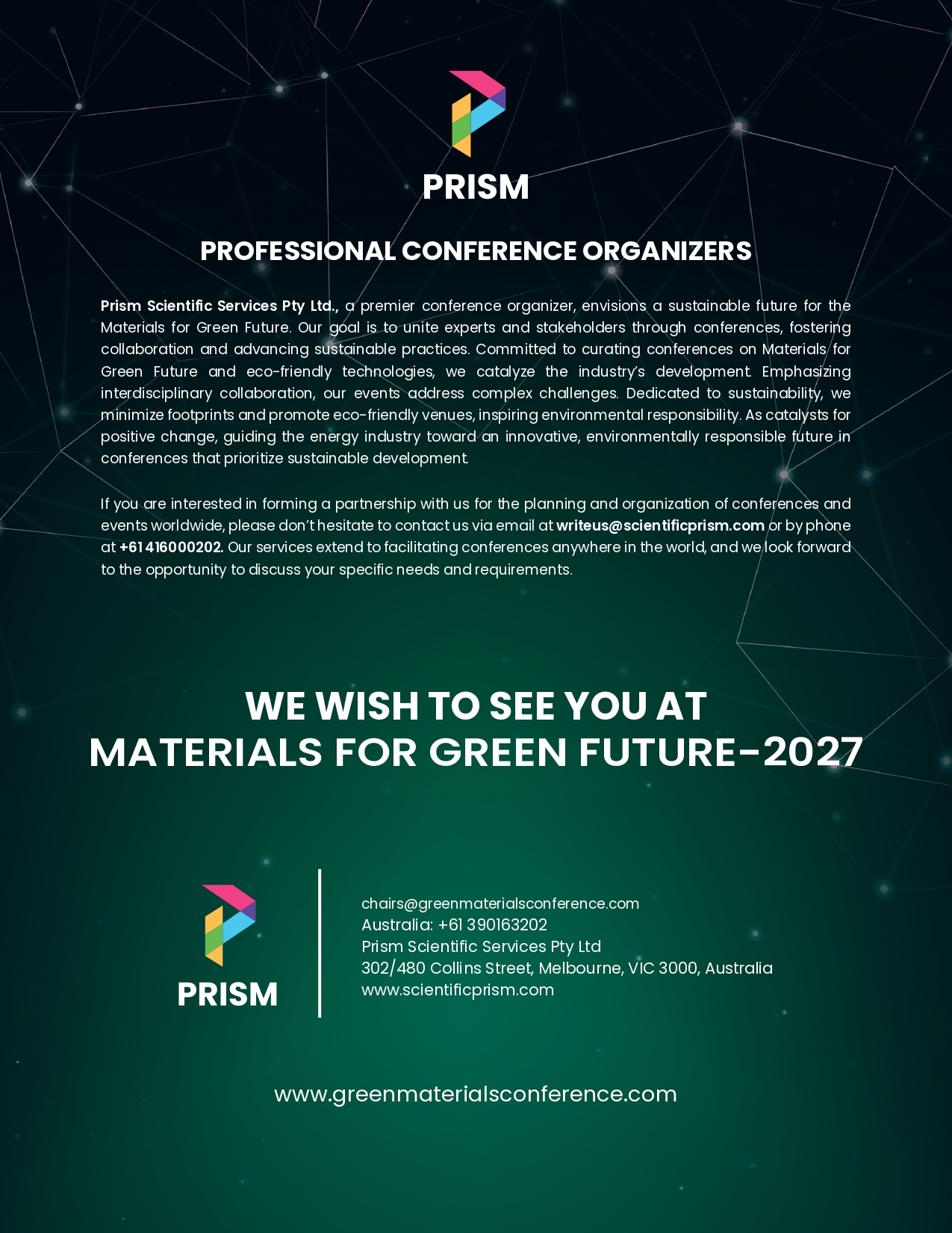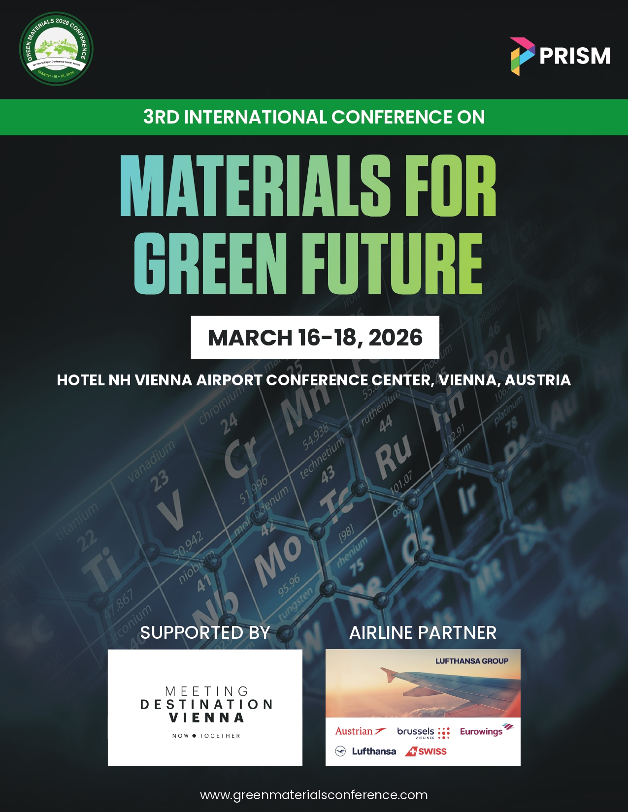Welcome to the 4th International Conference on Materials for a Green Future, widely recognized as the Green Materials Conference 2027—a leading Material Science Conference in Europe dedicated to advancing environmentally responsible materials and technologies.
