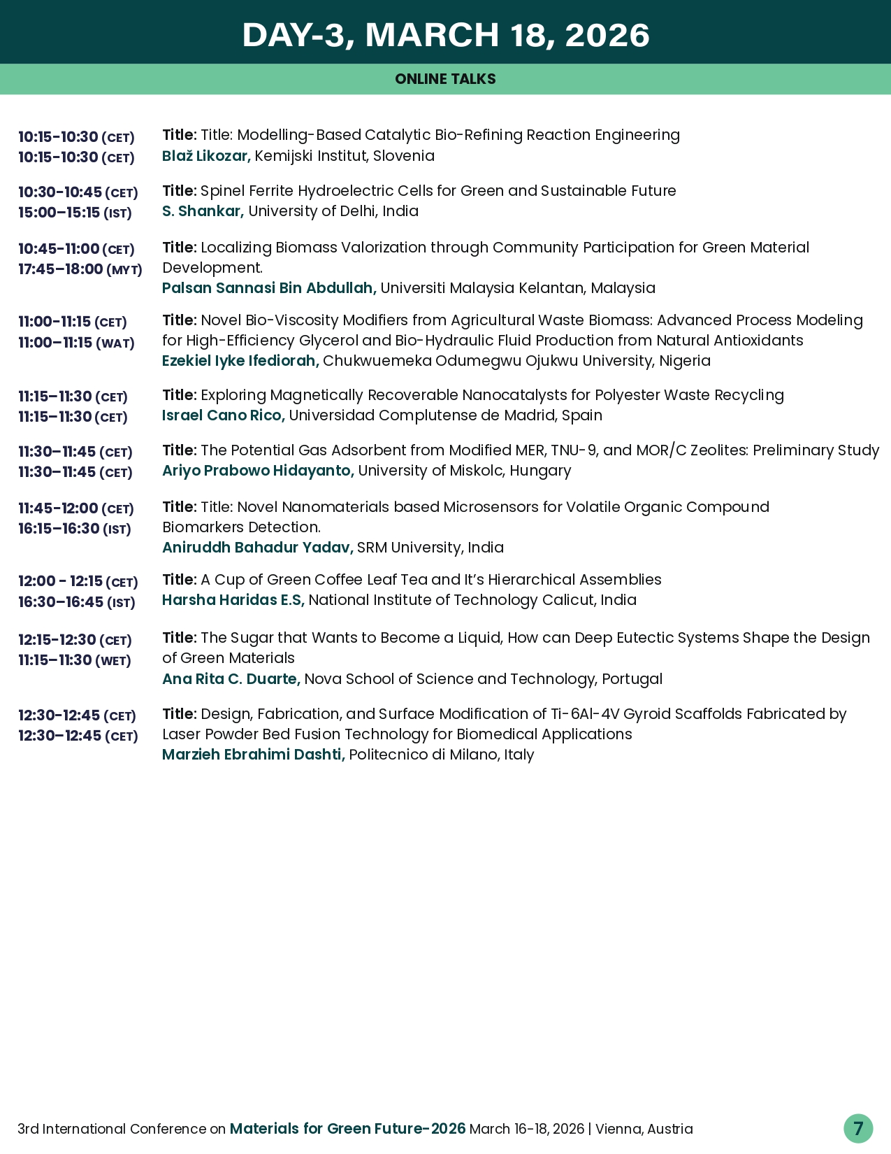 Vienna’s blend of cultural heritage, scientific excellence, and accessibility makes it an ideal host city. Whether you are an established expert, emerging researcher, or industry professional, this conference offers valuable opportunities to engage, collaborate, and contribute to sustainable innovation.